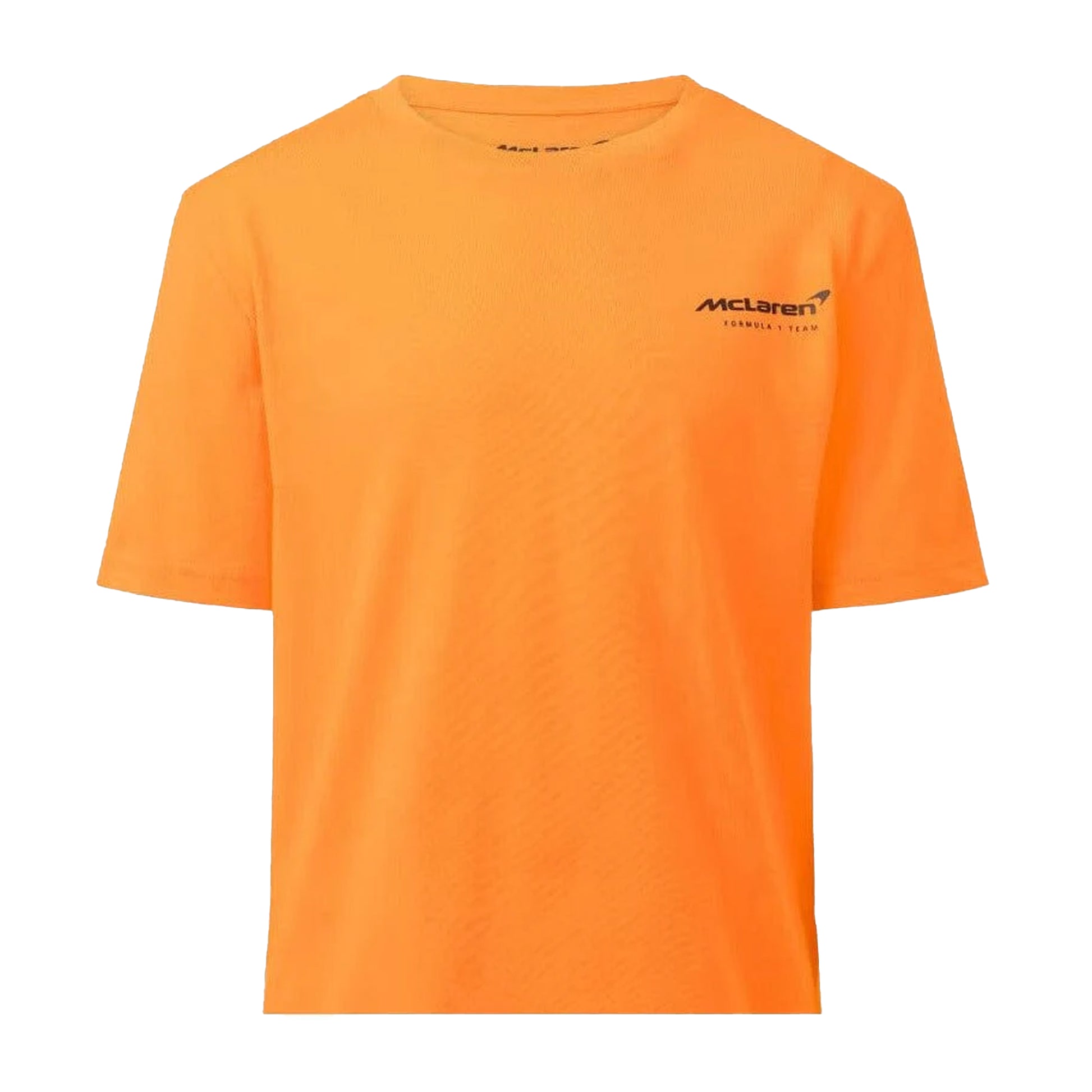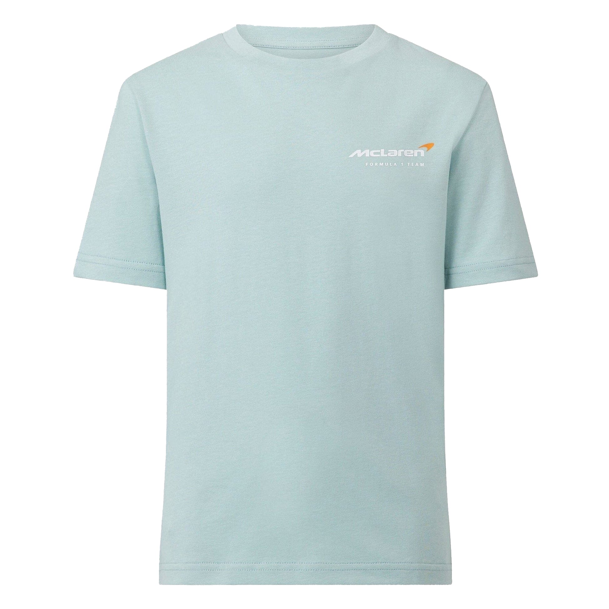 Introduce your child to the incredible world of motorsports with the McLaren F1 Kid's Dynamic T-Shirt. Featuring the iconic logo on the front left chest and a full back circular color wheel/Speedmark logo design, this tee is perfect for future racing enthusiasts. Available in Cloud Blue and Papaya colors.