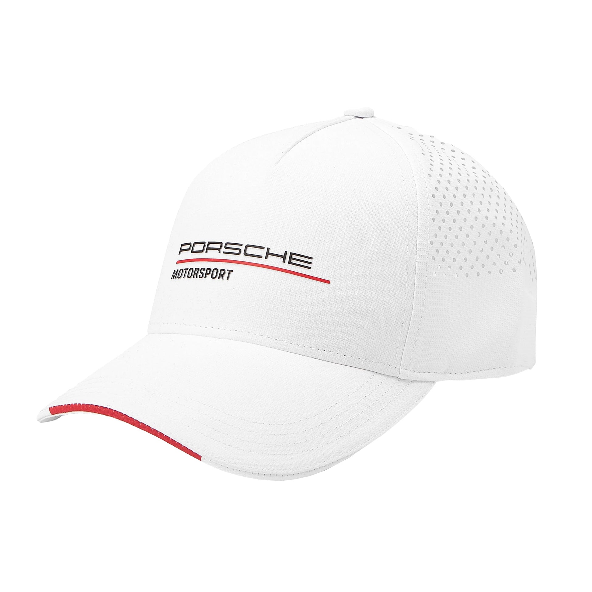 Expertly designed for the ultimate fan, the Porsche Motorsport Fanwear Hat is a stylish and comfortable way to show off your love for the sport. Made from 100% recycled materials, this hat features the iconic Porsche Motorsport logo and a laser cut ventilation for added comfort and coolness. One size fits all in red, white, or black.
